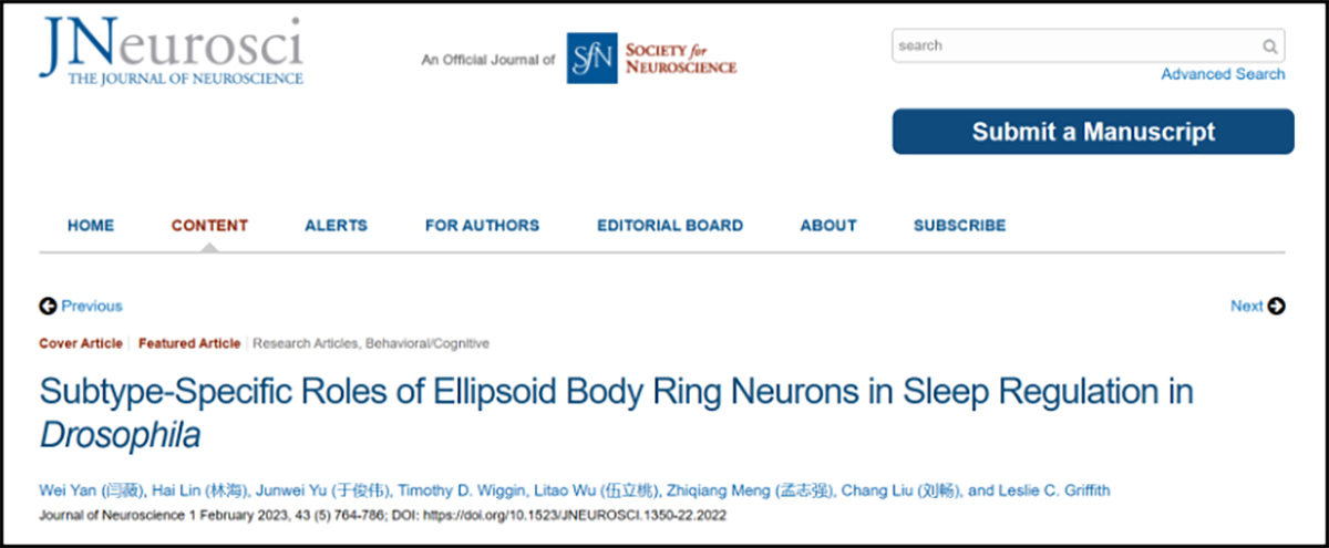 Recently, the Liu Chang team of the Institute of Brain Cognition and Brain Disease of the Shenzhen Institute of Advanced Technology of the Chinese Academy of Sciences (hereinafter referred to as the "Shenzhen Institute of Advanced Technology") and the Shenzhen-Hong Kong Institute of Brain Science Innovation cooperated with the Leslie C. Griffith team of the University of Brandeis in the United States, and published a research paper entitled "Subtype-specific roles of intelligent body ring neurons in sleep regulation in Drosophila" in the form of a cover paper on the Journal of Neuroscience, Combining neuroethology, classical genetic methods and two mathematical model analysis, it was identified that different circular neuron subtypes in the central brain ellipsoid of Drosophila coordinated to control the total amount of sleep, sleep structure and sleep homeostasis. Yan Wei, the research assistant of the Liu Chang team of the Shenzhen Institute of Advanced Technology, Chinese Academy of Sciences, is the first author of the article, and researcher Liu Chang and Professor Leslie C. Griffith are the co-correspondents of the article.